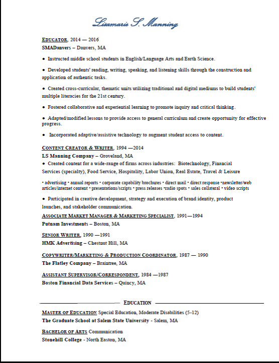 Lisamarie S. Manning --Dual Certified MA Educator