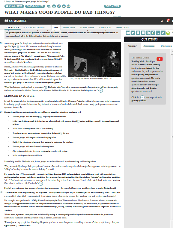 Screenshot-2018-4-16 CommonLit What makes good people do bad things Published April 16, 2018 at 577 × 761 in Artifacts ← Previous Next → Another example would involve utilizing CommonLit, an online paired text site comprising fiction and nonfiction texts that are easily differentiated with guided reading and audio accompaniment. Like Loading...